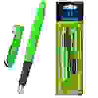 Ручка перьевая Schneider "Wavy A" синяя, 2 картриджа, грип, корпус зеленый, блистер0